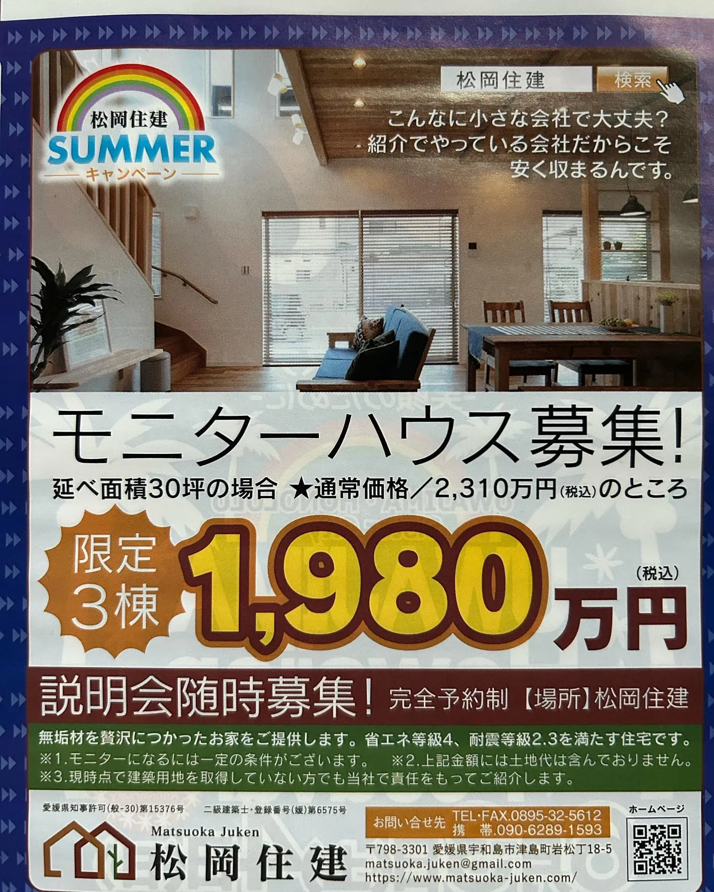 【愛媛・注文住宅】モニターハウス募集中🏡❗️随時募集中です❗️お気軽にお問い合わせください😊補助金も取り扱ってます👍#宇和島市自然素材#津島町自然素材#モニターハウス募集中#無垢の家#シラス壁#こどもエ…